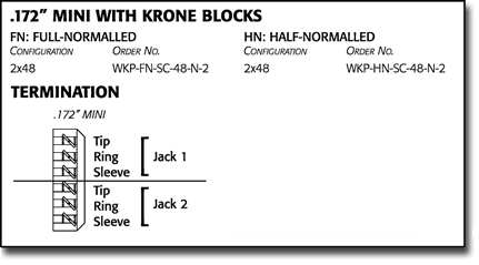 and MINI (TT/Bantam) punchdown patchbays wired to Krone IDC punchdown