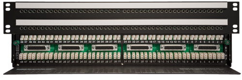 At our customers' request, we’ve now incorporated two very popular connectors onto the same patchbay, thus giving you more flexibility when wiring your system. The DB25 connectors interface with a wide range of consoles and external gear, while the Edac 3-Pin connectors give you the option of individual signals off to designated locations. Both of these patchbays feature the exceptional flexibility of the Audio Accessories, Inc. exclusive Quick-Switch™ normalling system located on the rear of the panel. The Quick-Switch normalling allows you to set the individual normals and grounds on a per jack pair basis. This enables you to full-normal (FN), half-normal (HN) or non-normal (NN) by sliding the switches into the appropriate positon. You also can set grounding options via the same switches; isolated, bussed or grounds vertically strapped (GVS). At a later date if you need to change a normal or ground, it’s simple, just slide the switch to the desired position.