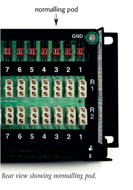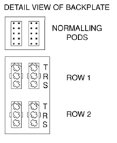 Detailed view of normalling pod settings. All units supplied half-normalled and bussed grounds as viewed above.